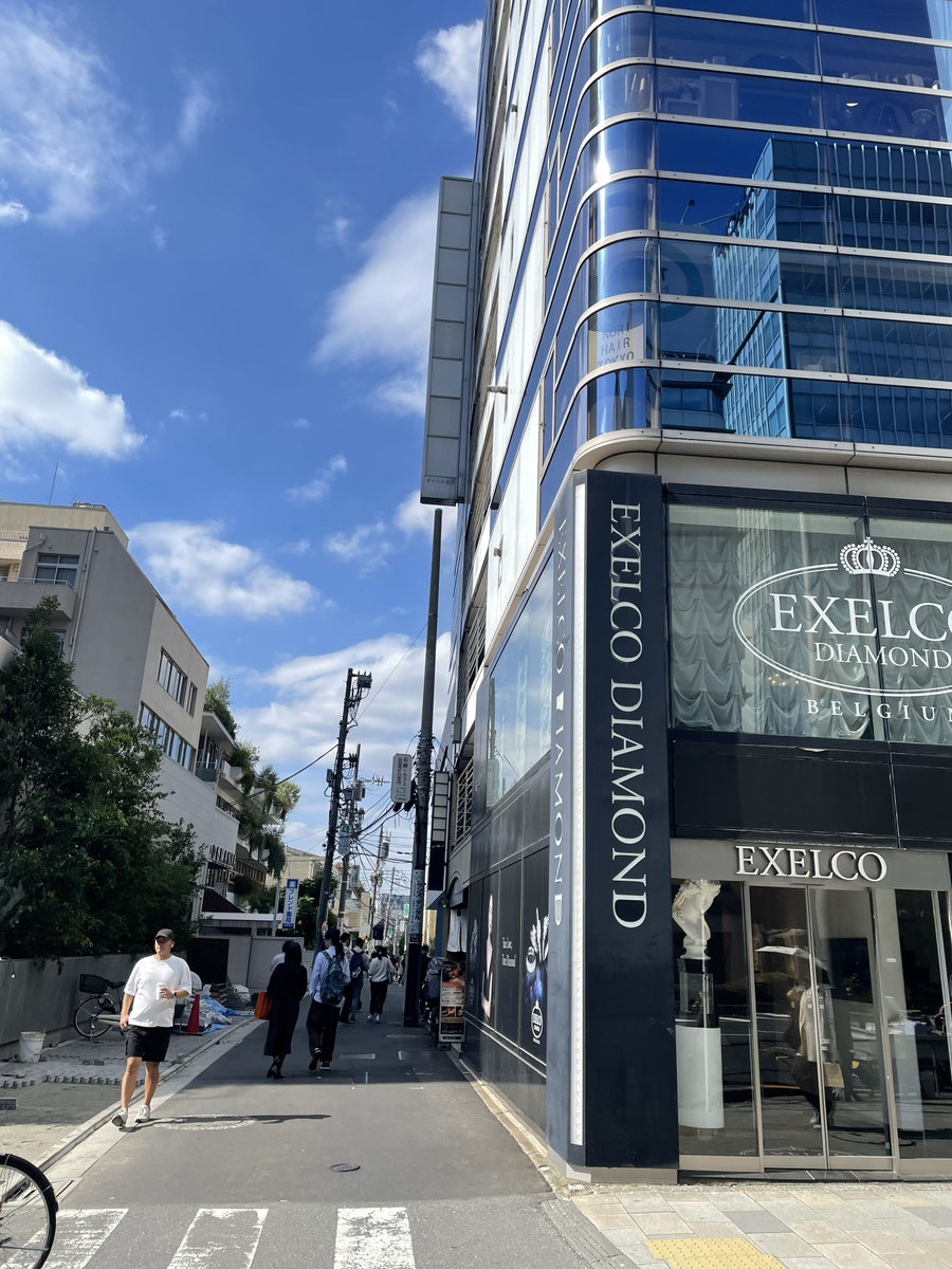 表参道駅B2出口を上がってください。上の写真に見える「EXELCO DIAMOND」(宝石店)のあたりに行ってください。